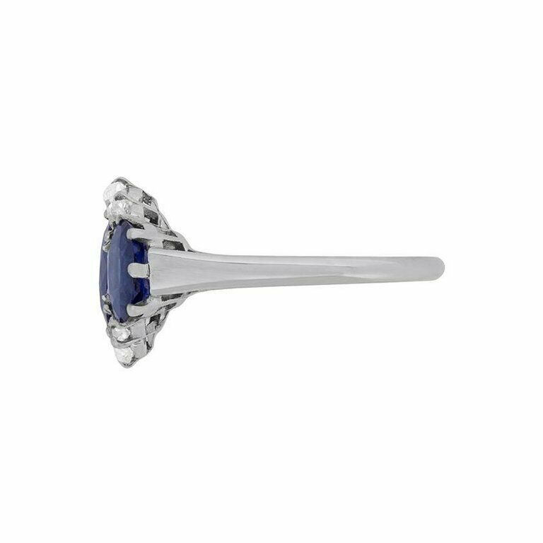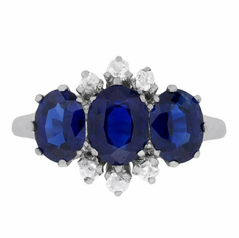 3ct Oval Cut Blue Sapphire Engagement Ring Unique Trilogy 14k White Gold Finish