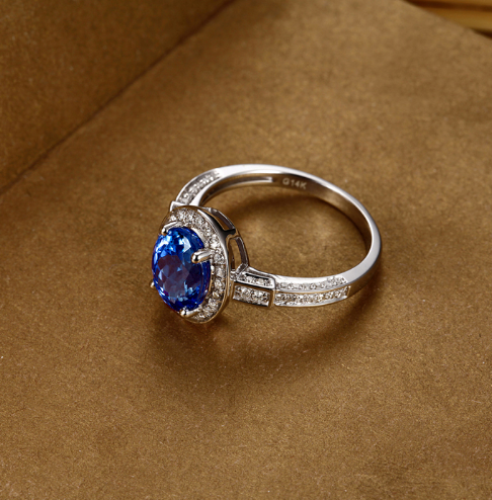 3Ct Oval Cut Blue Tanzanite Diamond Halo Engagement Ring 14K White Gold Finish