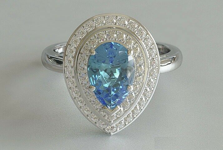 3ct Pear Cut Blue Aquamarine Engagement Ring Double Halo 14k White Gold Finish