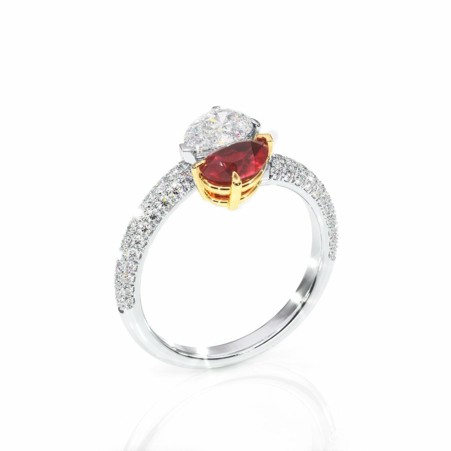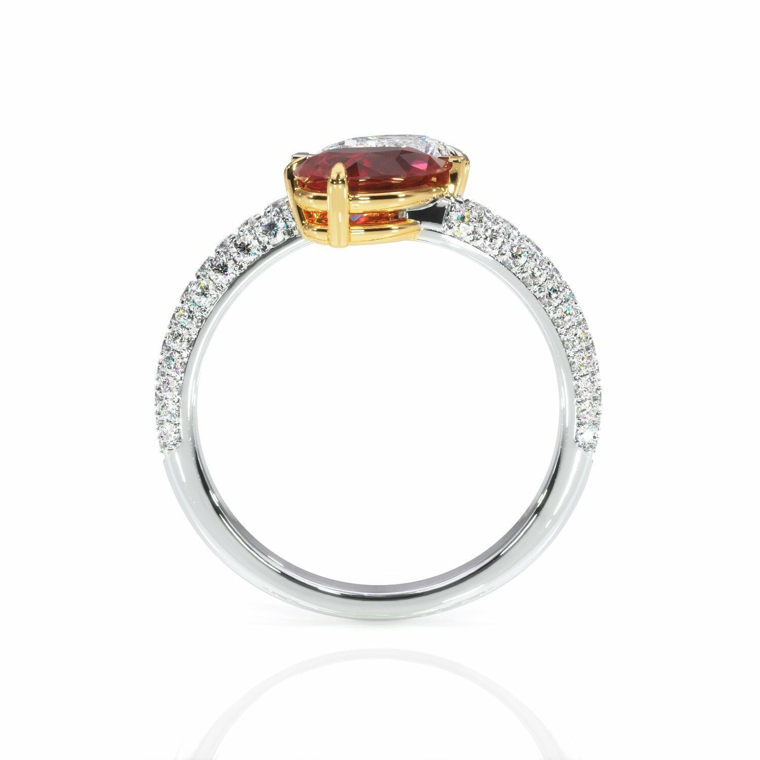 3Ct Pear Cut Pink Ruby and Diamond ByPass Engagement Ring 14K White Gold Finish