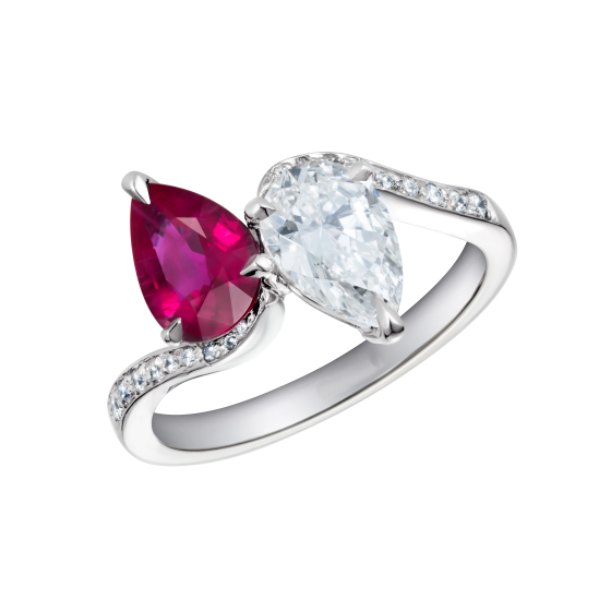 3Ct Pear Cut Pink Ruby Diamond Two Stone Engagement Ring 14K White Gold Finish