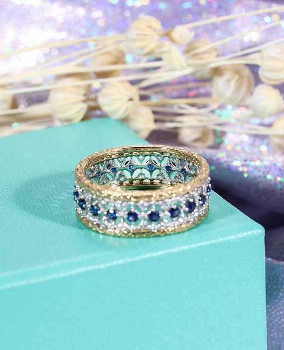 3ct Round Cut Blue Sapphire Wedding Band Ring 14k Dual Tone Finish Full Eternity