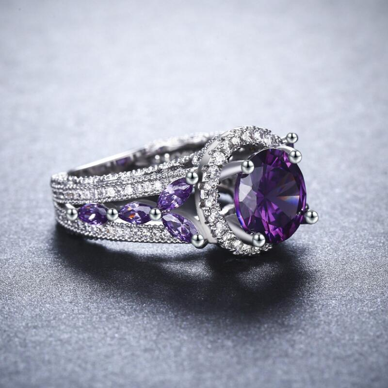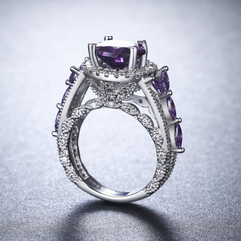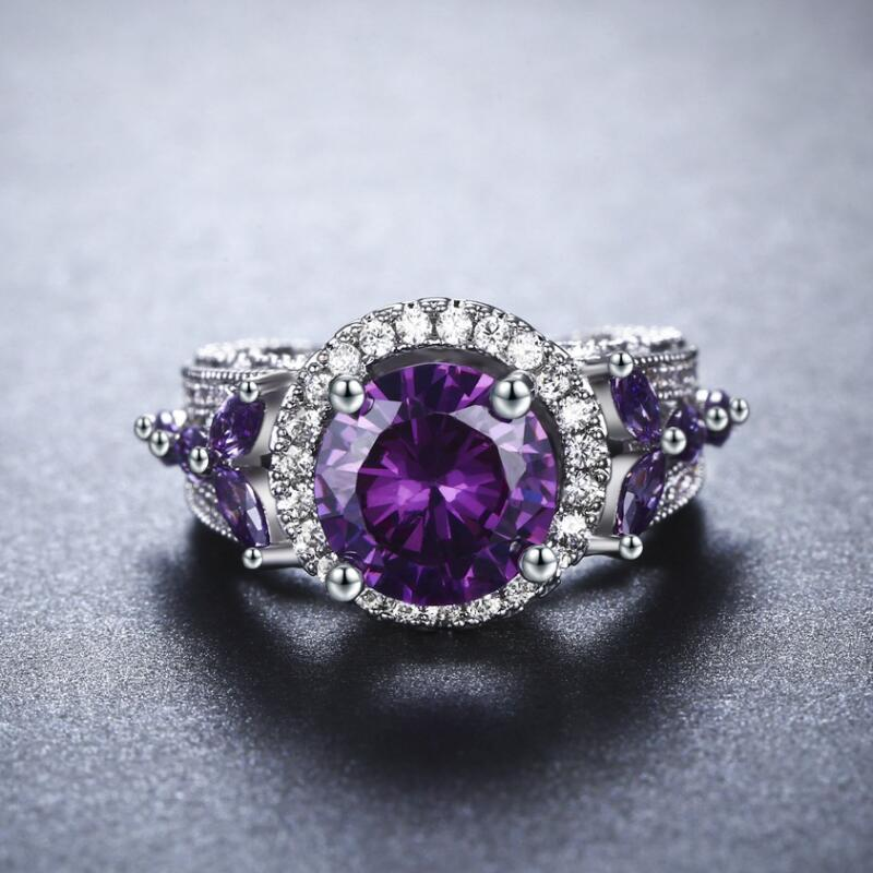3Ct Round Cut Purple Amethyst Halo Art Deco Engagement Ring 18K White Gold Over