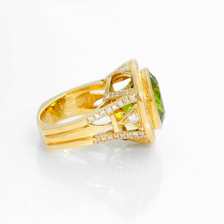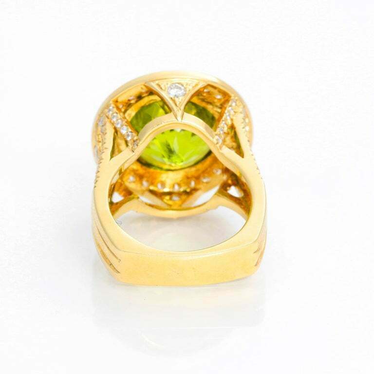 3ct Round Green Peridot Cocktail Halo Vintage Inspired Ring 14k Yellow Gold Over