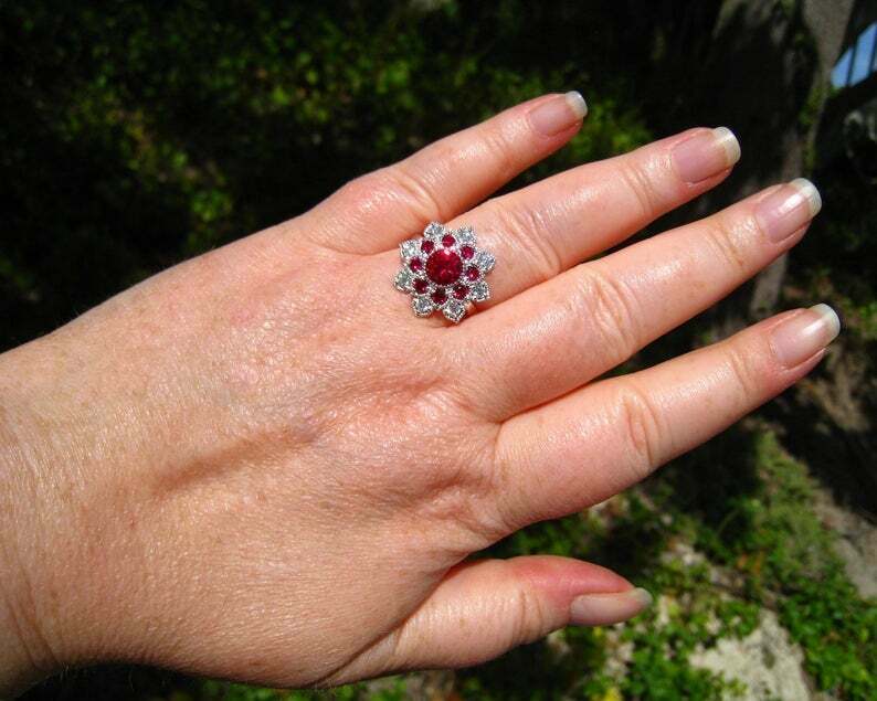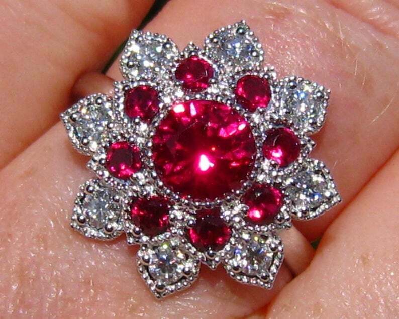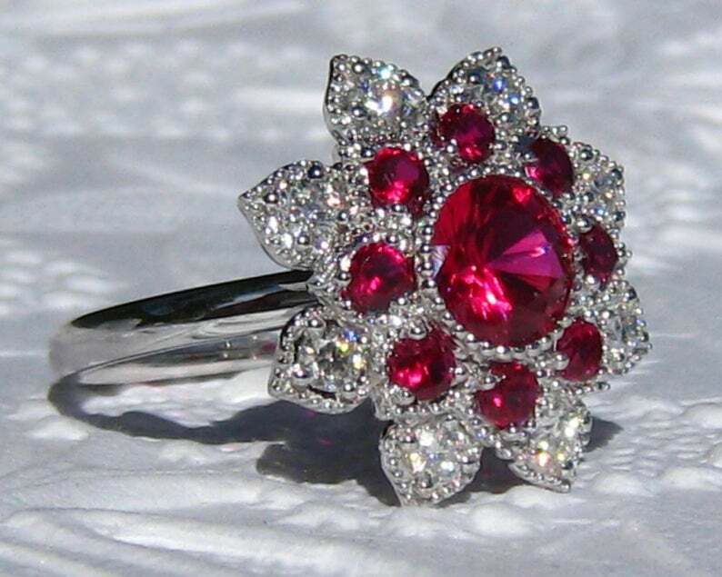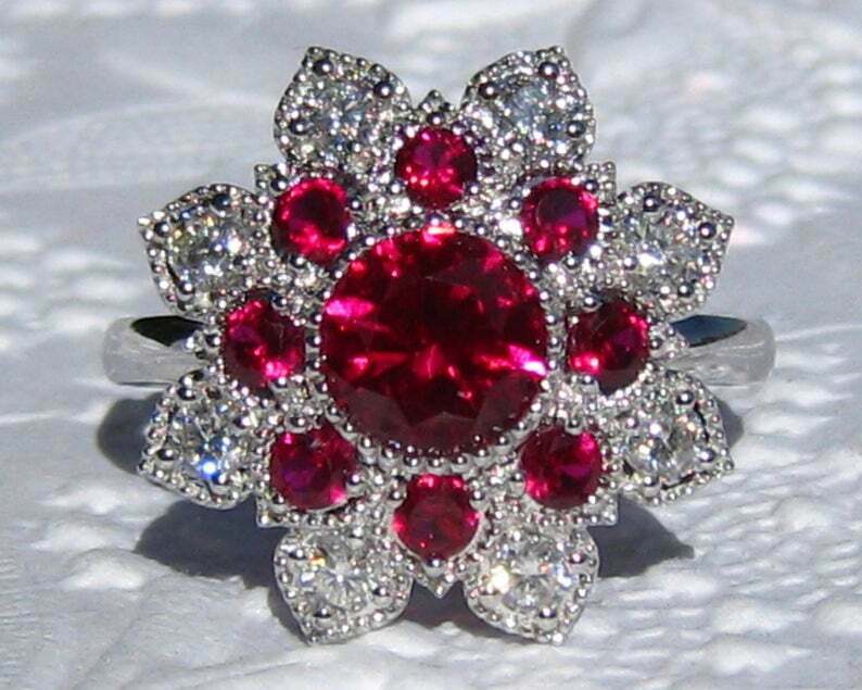 4.5ct Round Cut Pink Ruby Flower Cocktail Engagement Ring 14k White Gold Finish