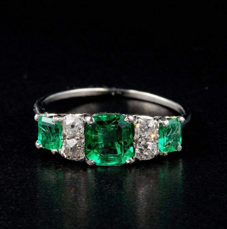 4Ct Asscher Green Emerald Vintage Art Deco Engagement Ring 14K White Gold Over