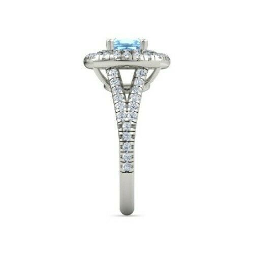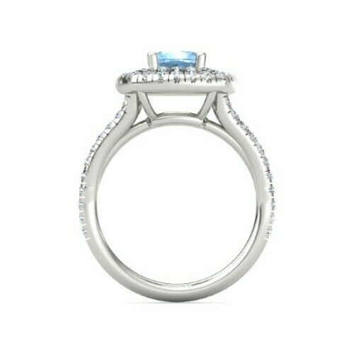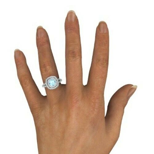 4Ct Cushion Cut Blue Aquamarine Dual Halo Engagement Ring 14K White Gold Finish