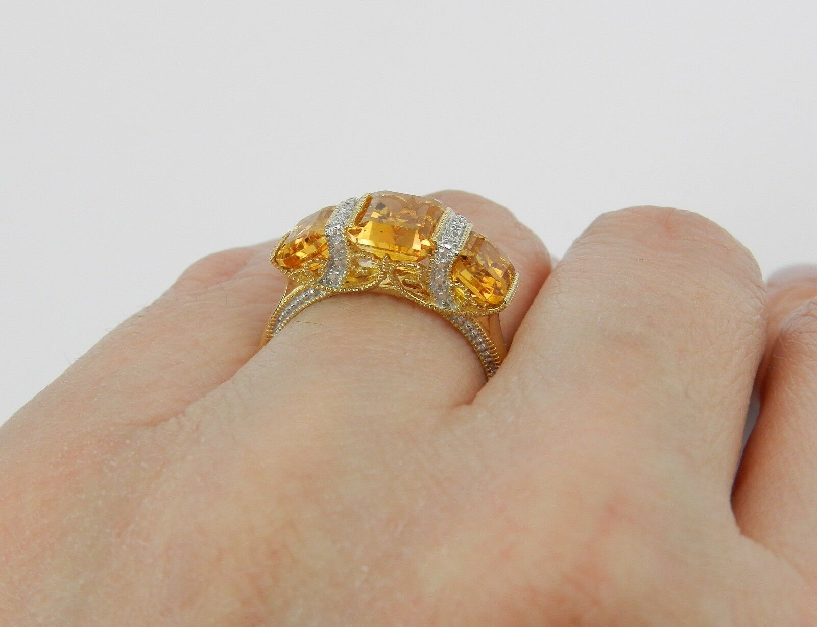4ct Emerald Yellow Citrine Trilogy Gatsby Engagement Ring 14k Yellow Gold Finish