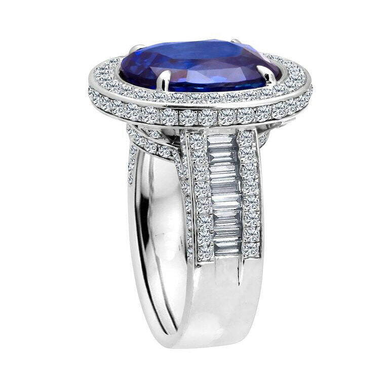 4ct Oval Cut Blue Sapphire Engagement Ring Halo Baguette Accent 14k White Gold Over