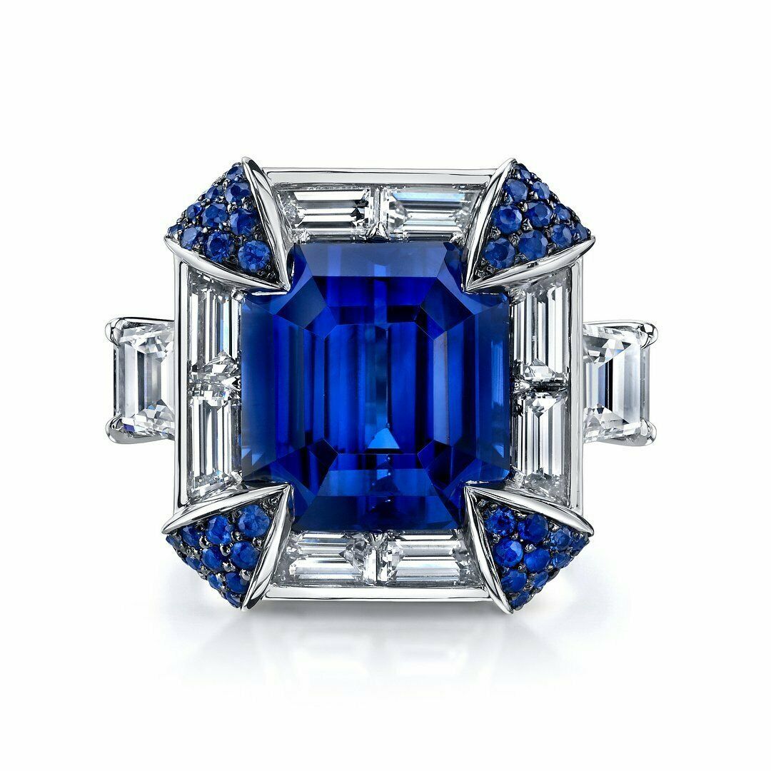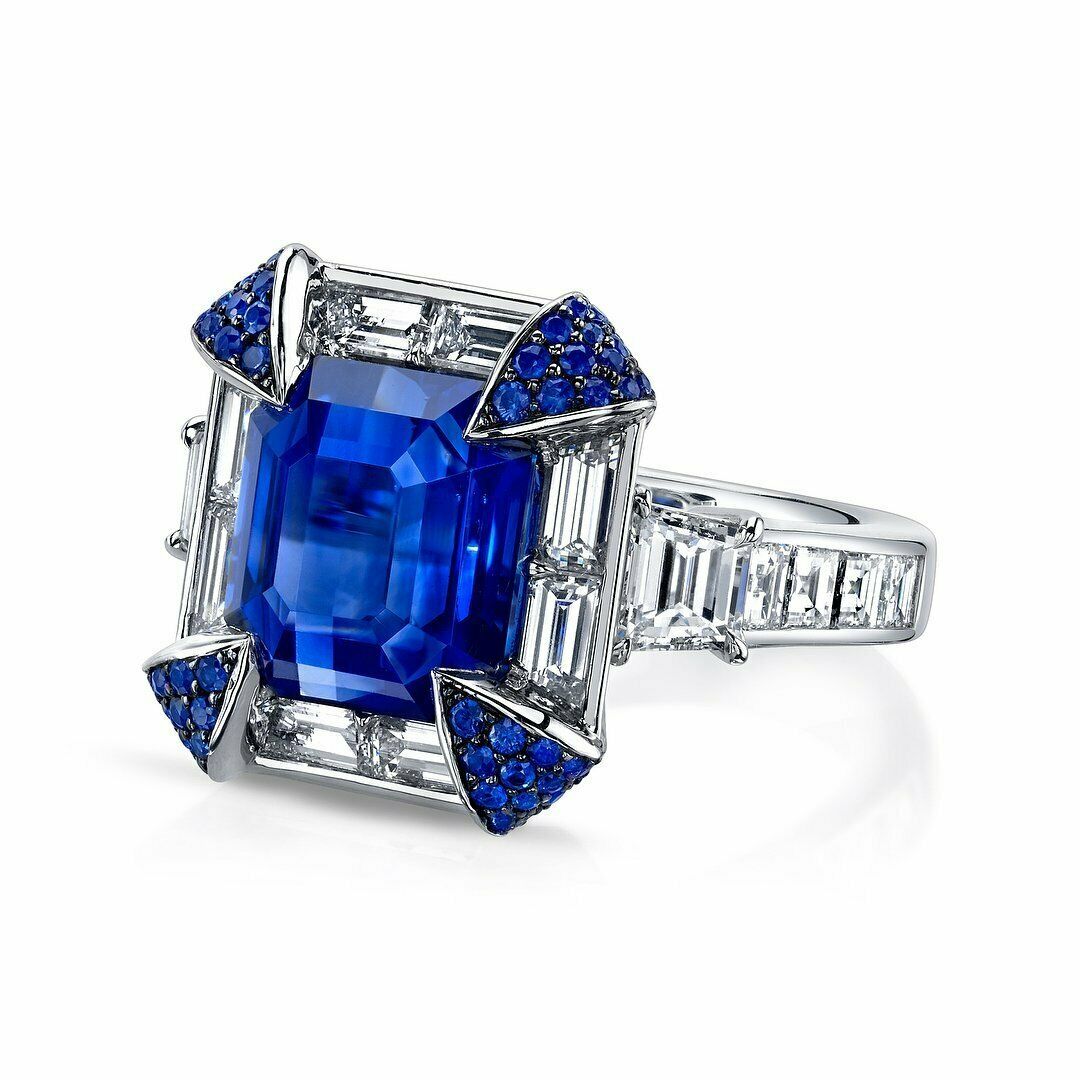 5Ct Asscher Cut Blue Sapphire Diamond Gatsby Art Deco Ring 14K White Gold Finish