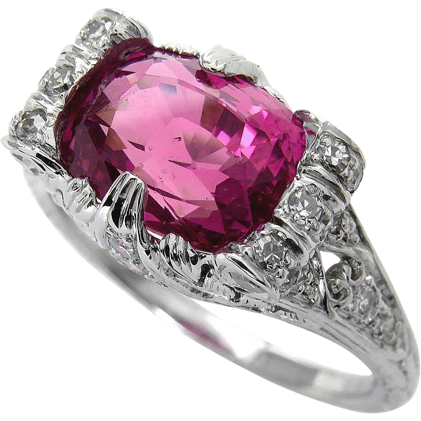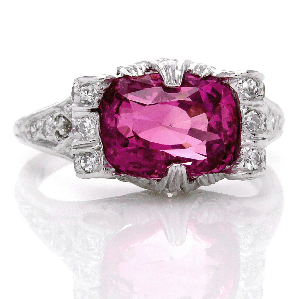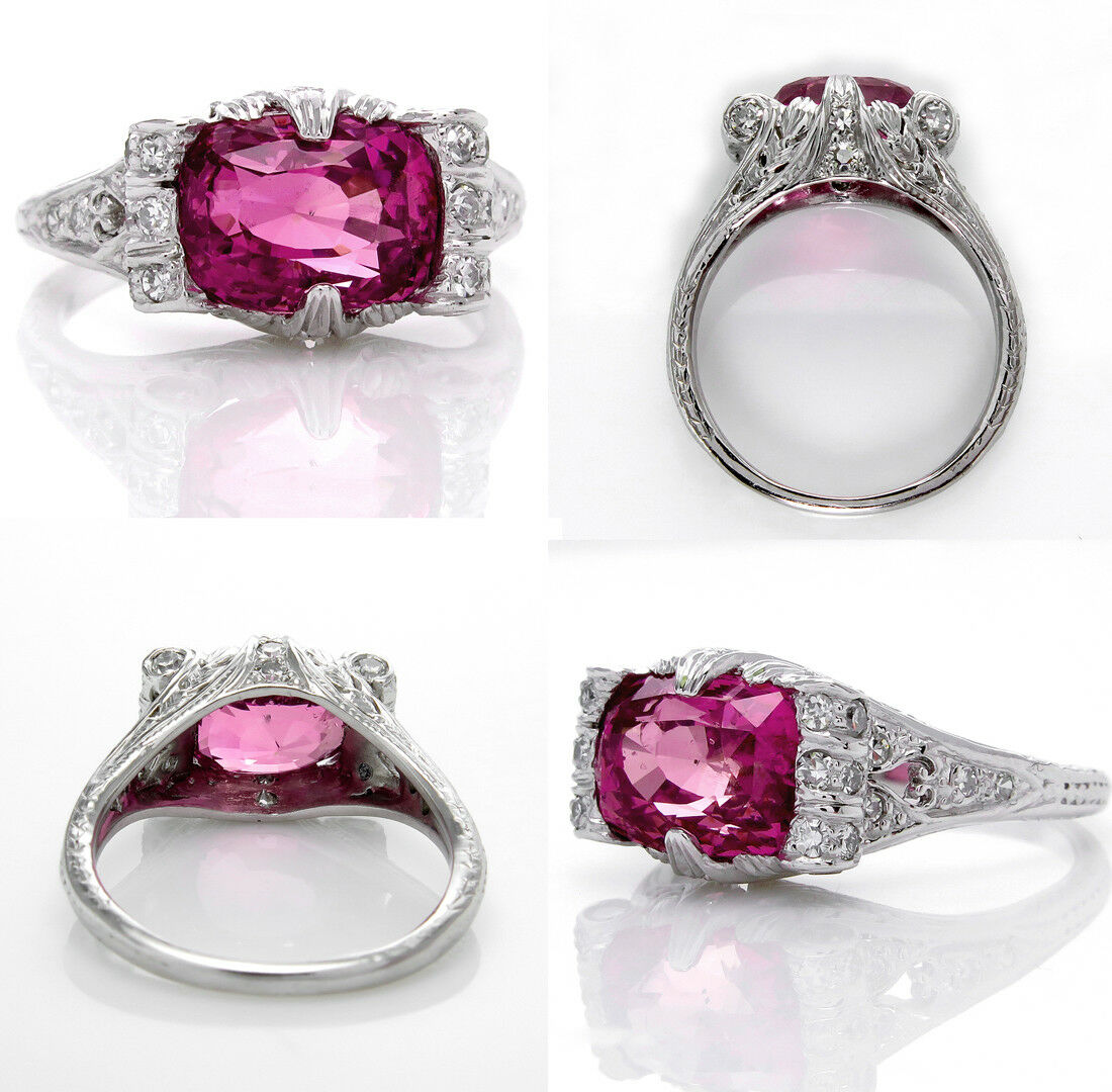 5Ct Cushion Pink Sapphire Antique Vintage Engagement Ring 14K White Gold Finish