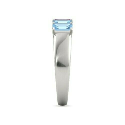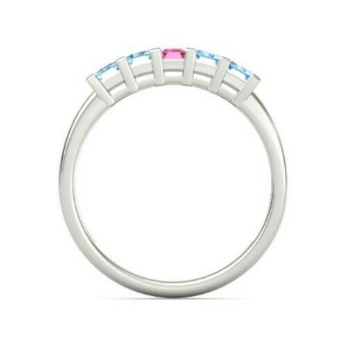 5Ct Emerald Cut Pink Sapphire Blue Aquamarine Band Ring 14K White Gold Finish