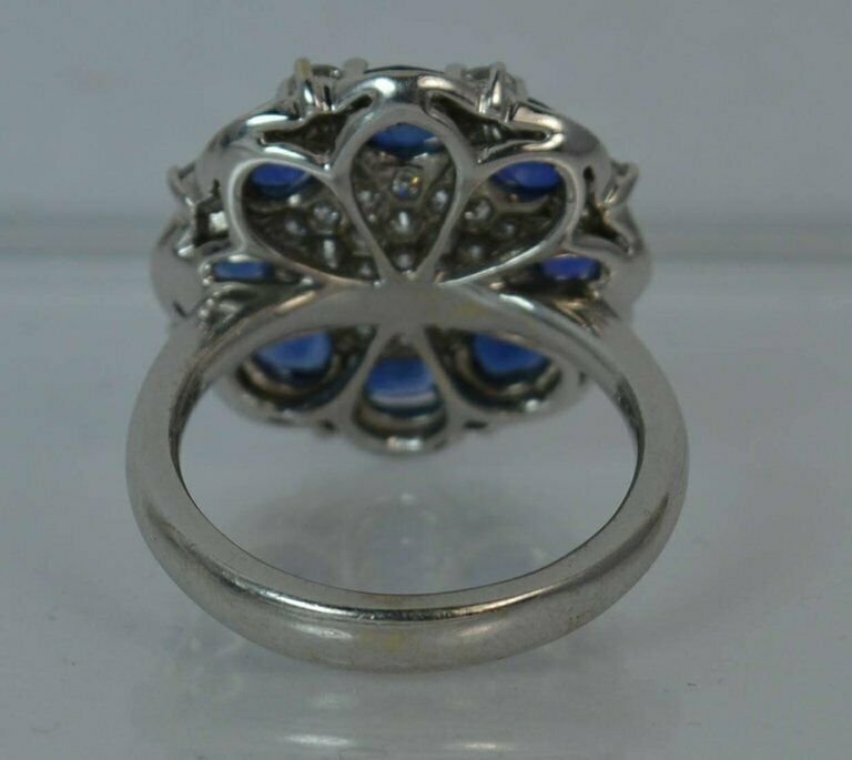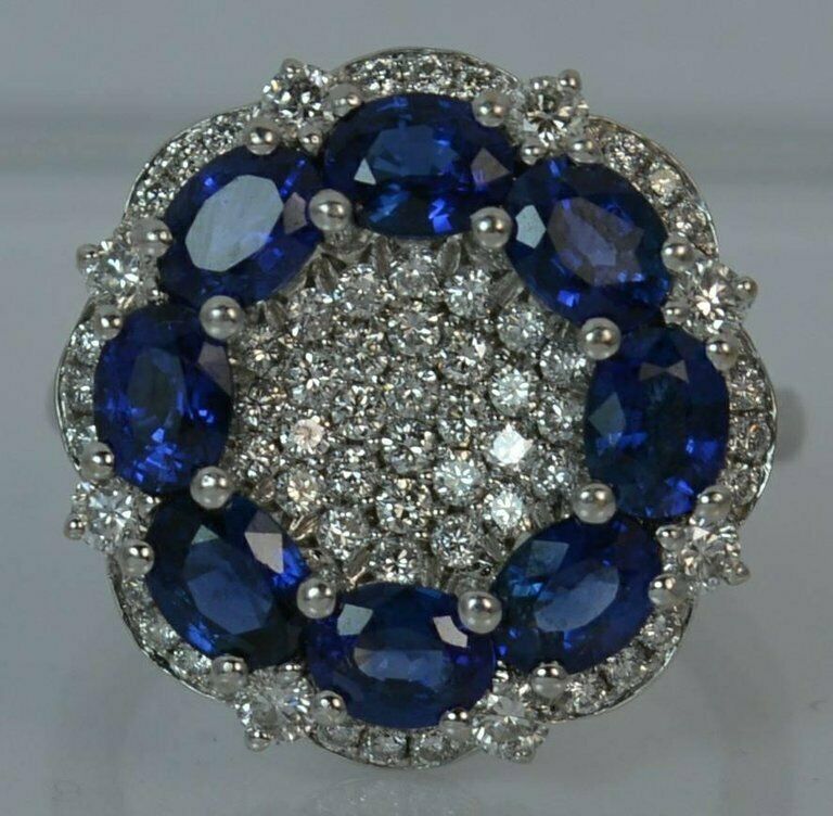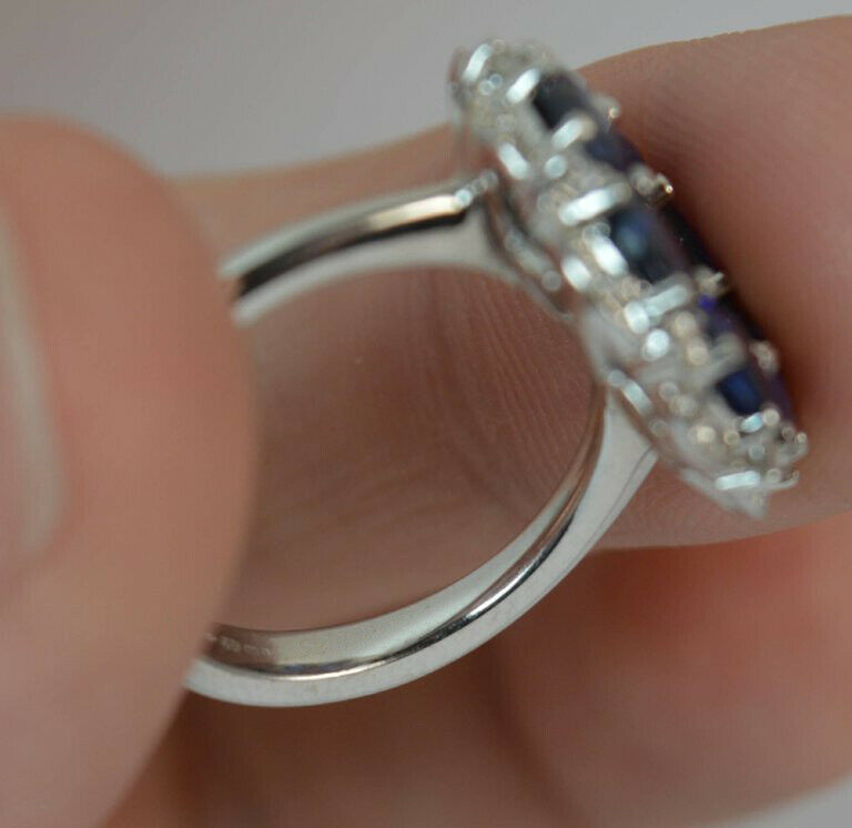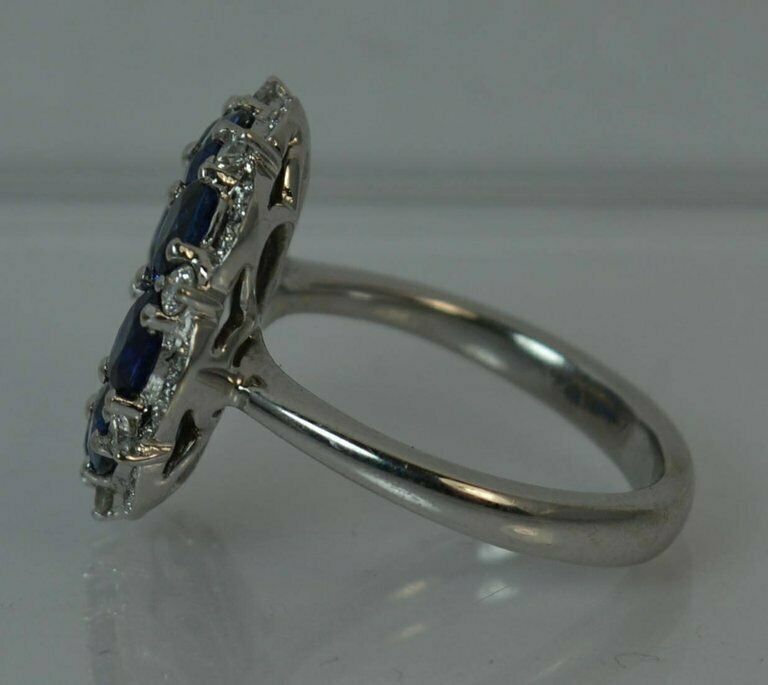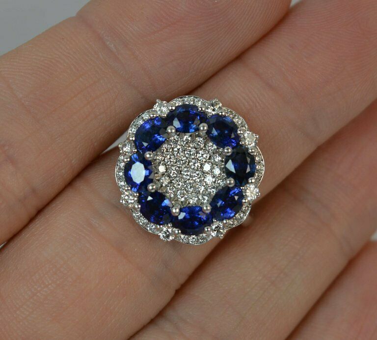5ct Oval Cut Blue Sapphire Engagement Ring Cluster Cocktail 14k White Gold Finish