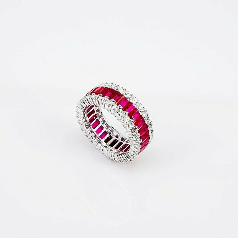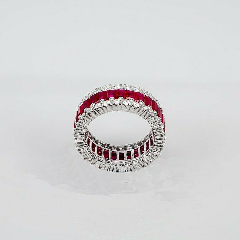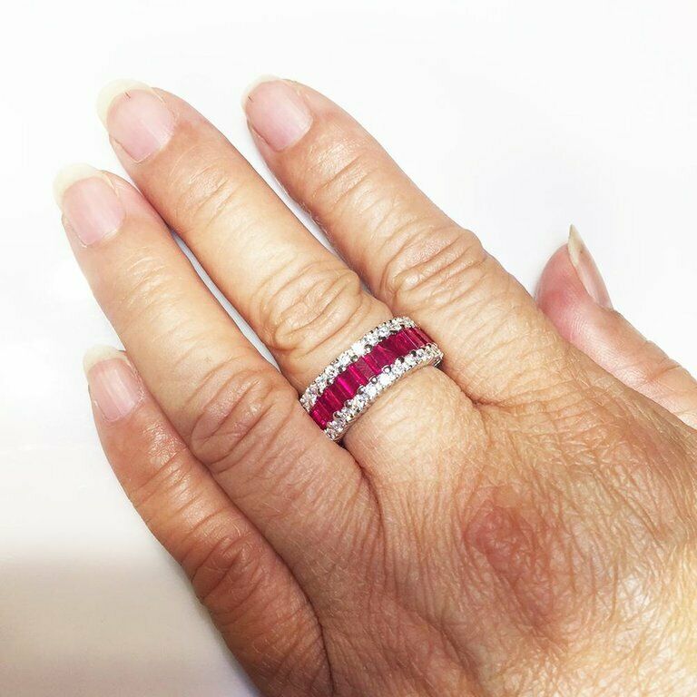6Ct Emerald Cut Pink Ruby Diamond Full Eternity Wedding Band 14K White Gold Over