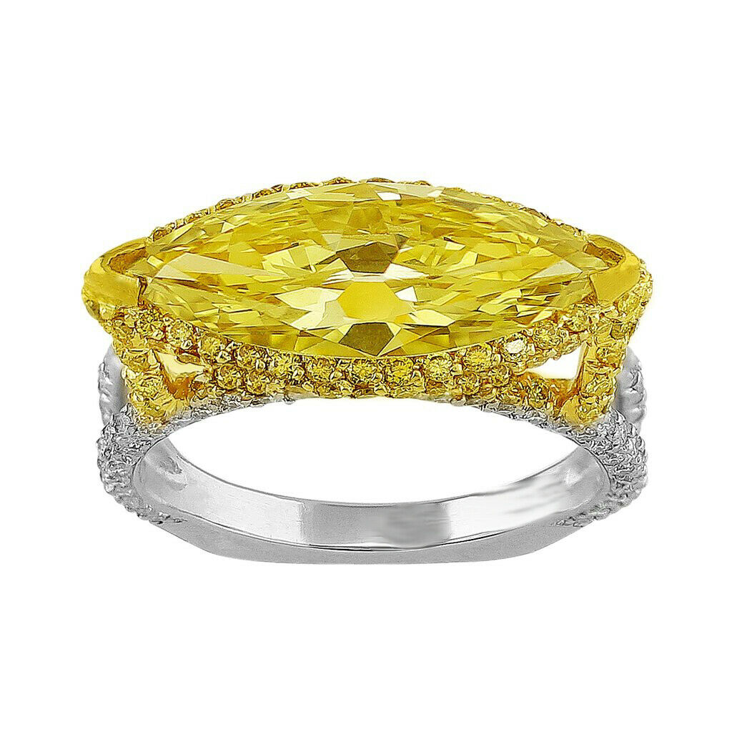 6Ct Marquise Cut Yellow Sapphire Queens Cocktail Ring 14K Dual Tone Gold Finish