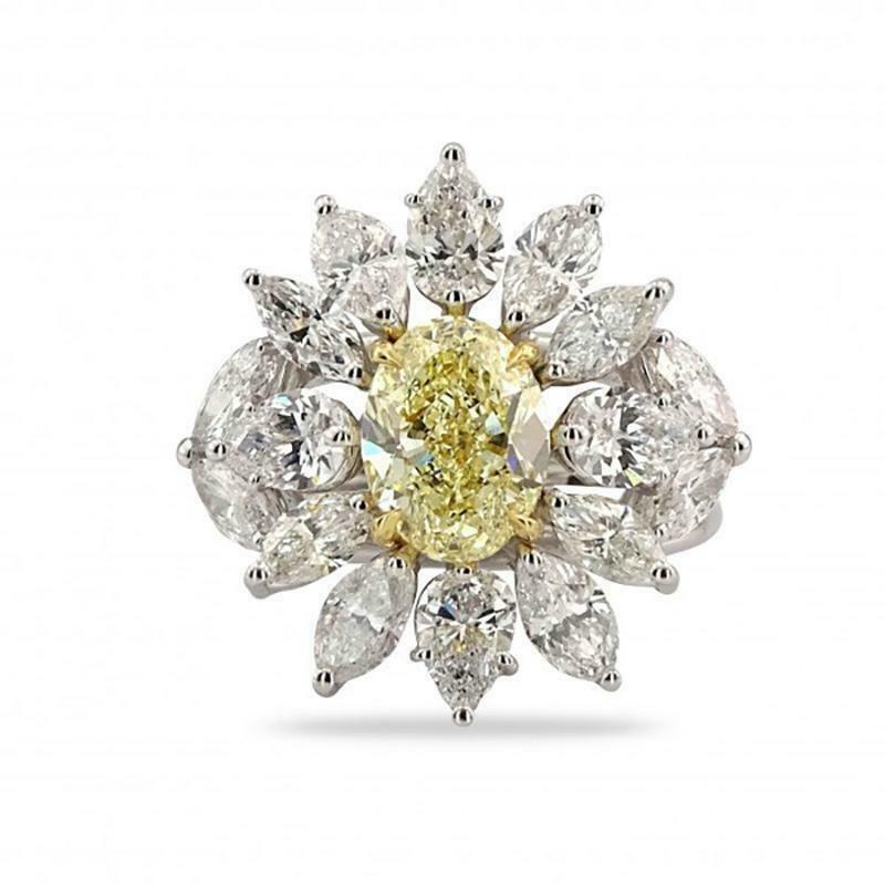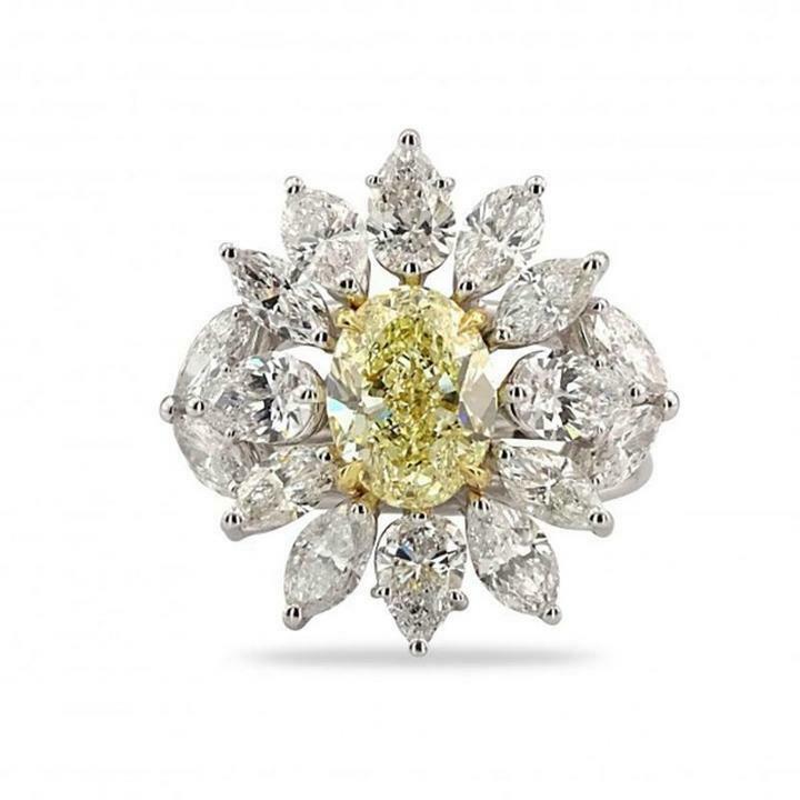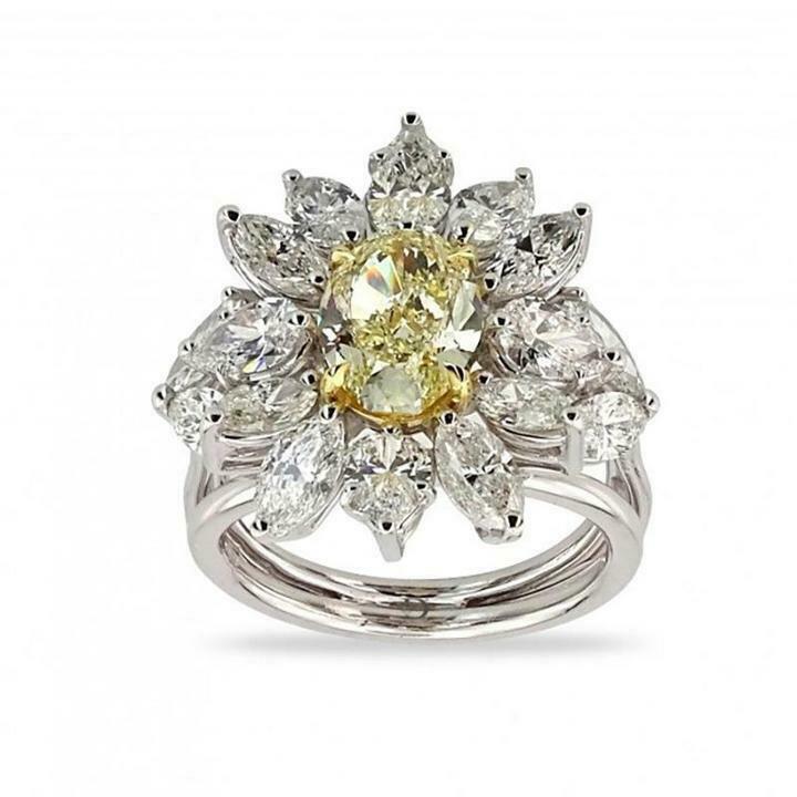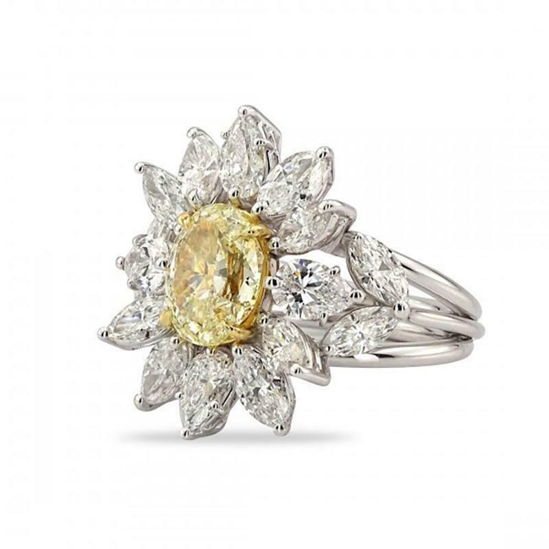 6Ct Oval Cut Yellow Sapphire Diamond Floral Cocktail Ring 14K White Gold Finish