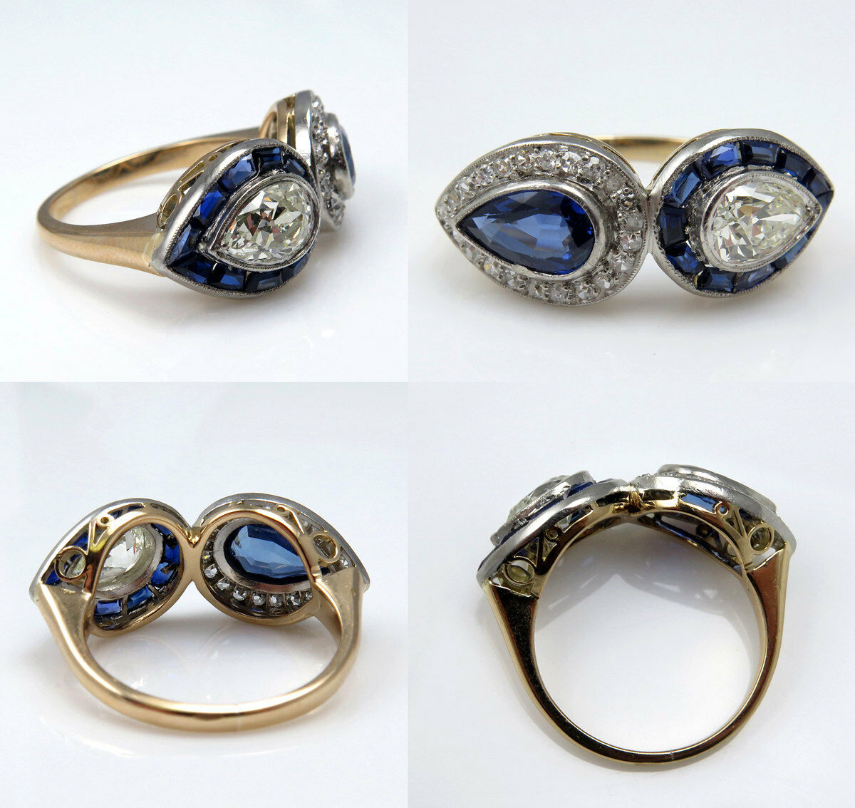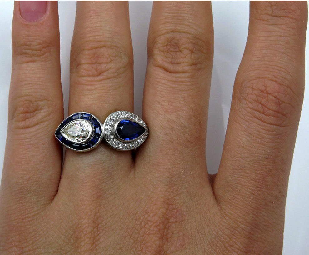 6Ct Pear Cut Blue Sapphire Diamond Halo Art Deco Ring 14K Rose White Gold Finish