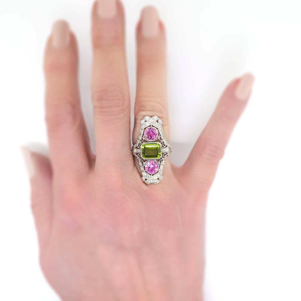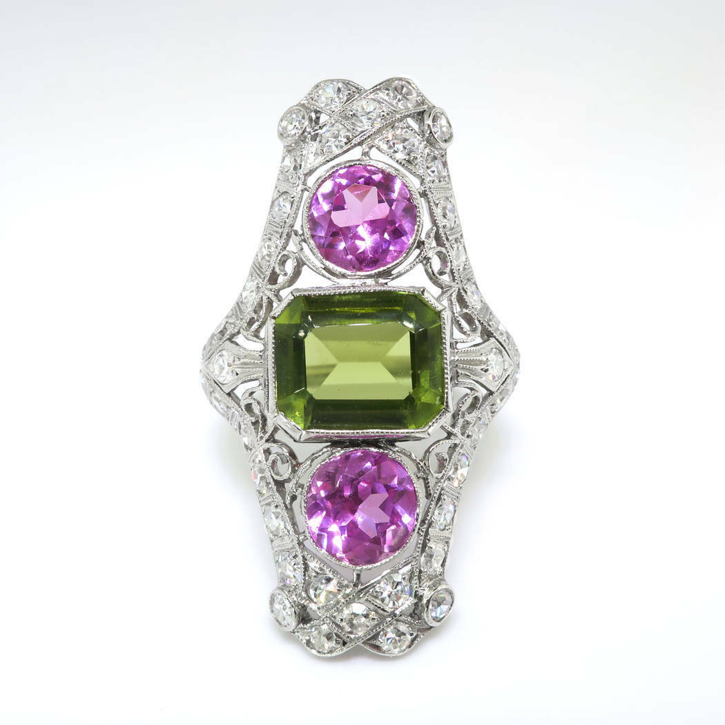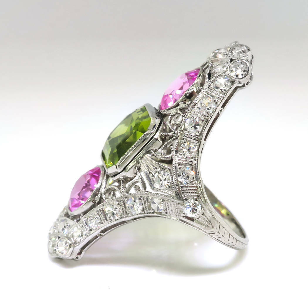 7ct Emerald Green Perdiot Edwardian Art Deco Engagement Ring 14k White Gold Over