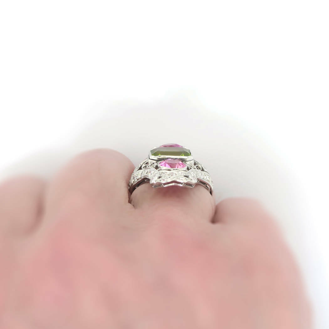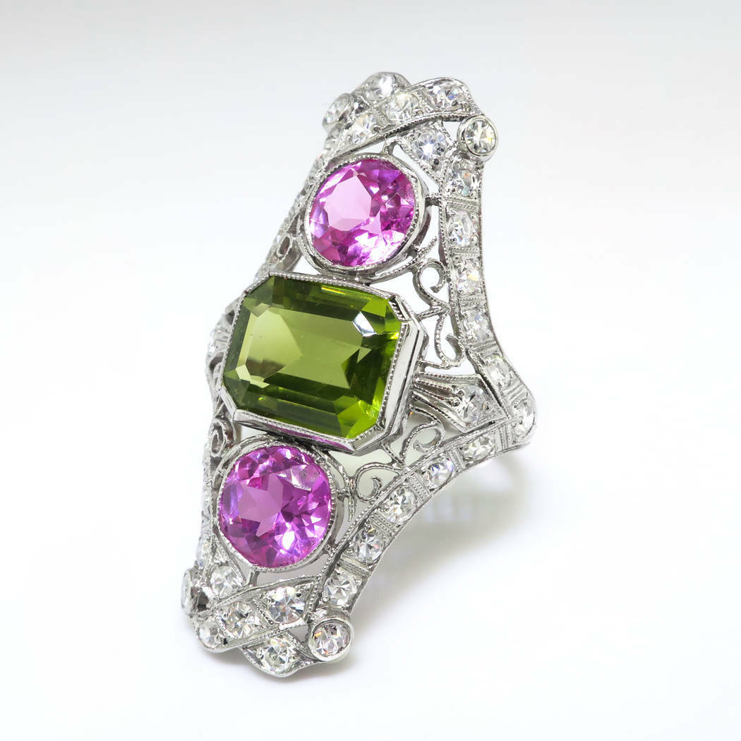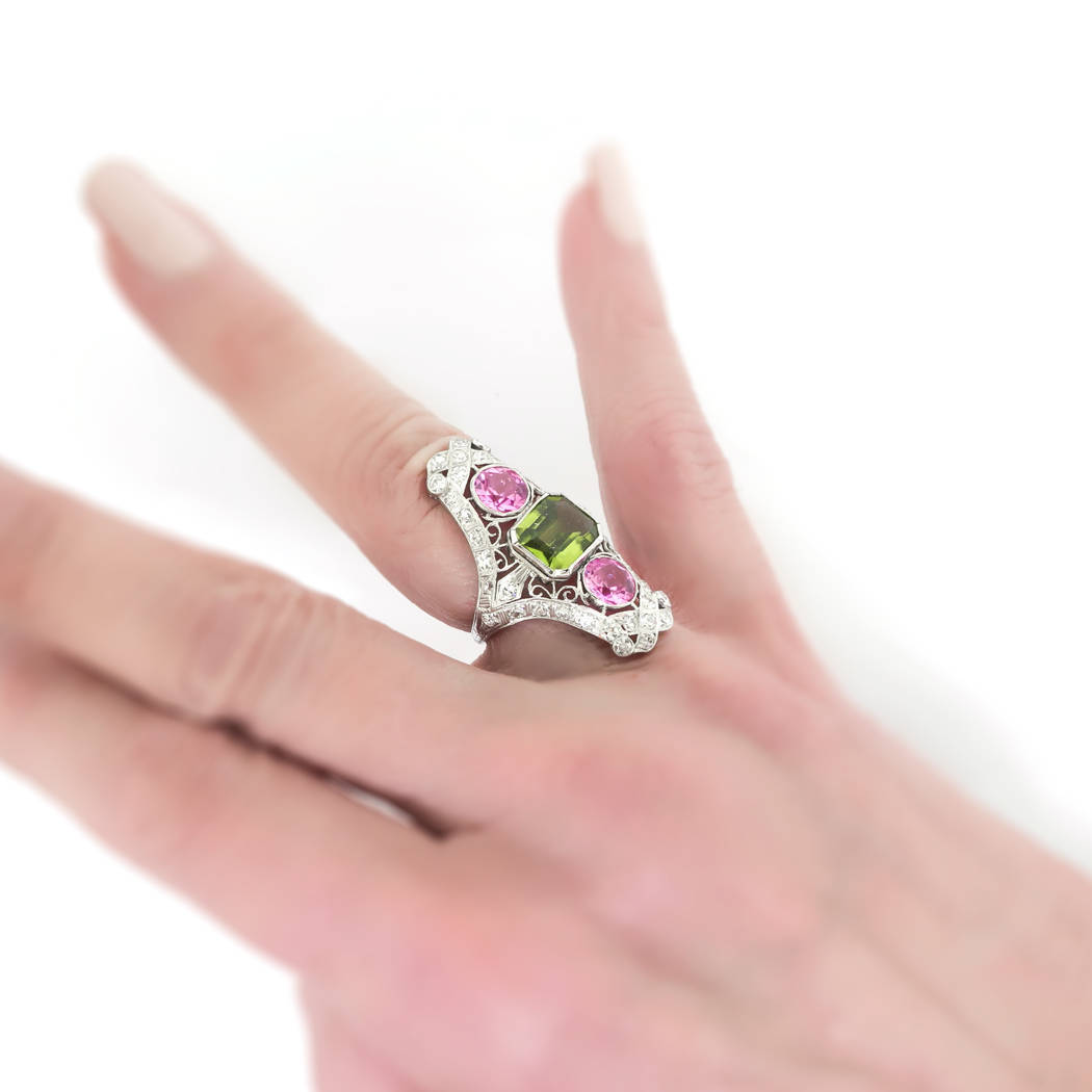 7ct Emerald Green Perdiot Edwardian Art Deco Engagement Ring 14k White Gold Over