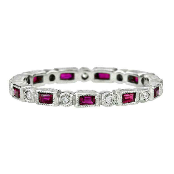 1ct Emerald Cut Pink Ruby Vintage Milgrain Full Eternity Band 14k WhiteGold Over