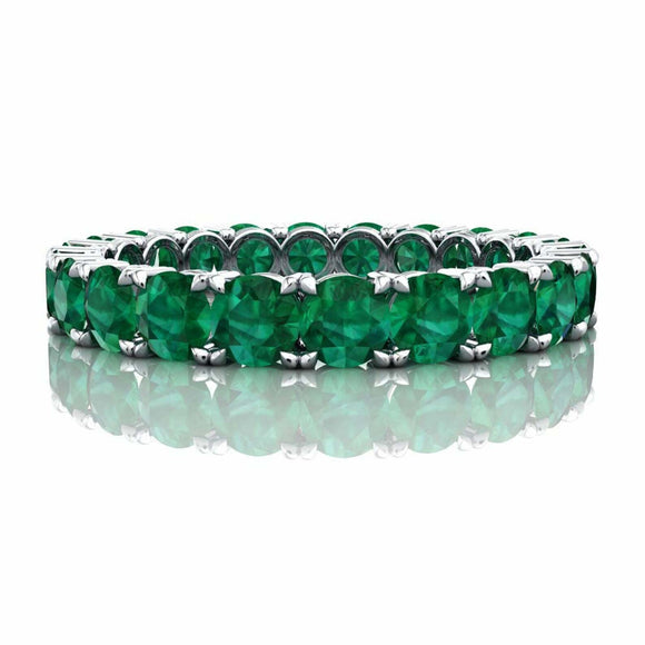 2.5ct Round Cut Green Emerald Wedding Band Iced Full Eternity 14k WhiteGold Over