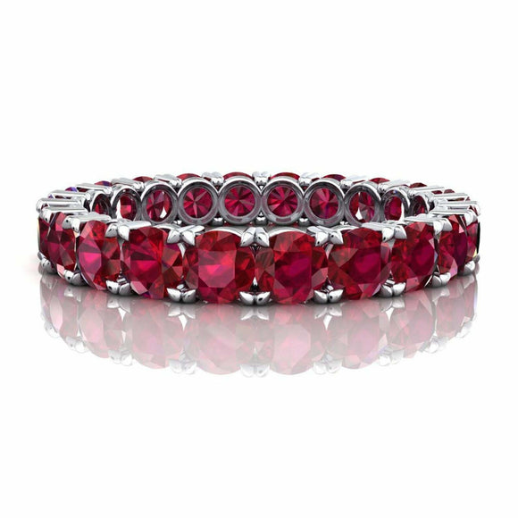 3.5ct Round Cut Pink Ruby Wedding Band Iced Full Eternity 14k White Gold Finish