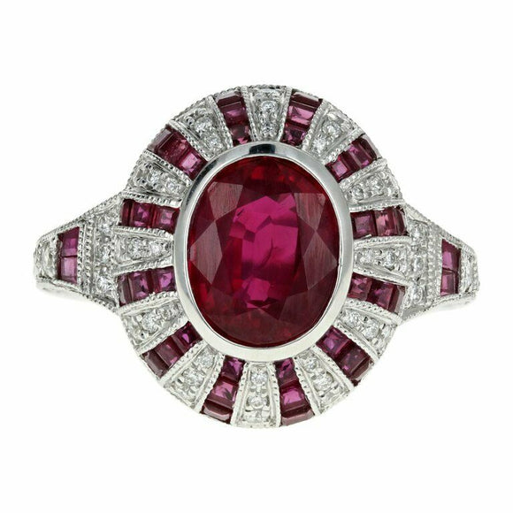 2ct Oval Cut Pink Ruby Engagement Ring Art Deco Milgrain 14k White Gold Finish