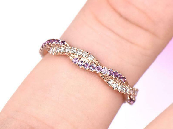 1ct Round Cut Purple Amethyst Wedding Band Ring Twisted Swirl 14k Rose Gold Over