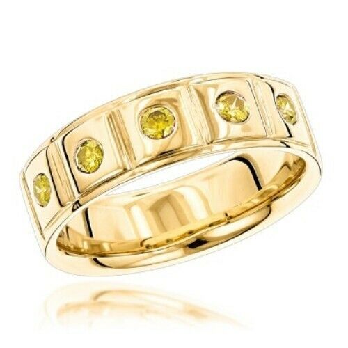 1Ct Round Yellow Sapphire Men Wedding Band Engagement Ring 14K Yellow Gold Over