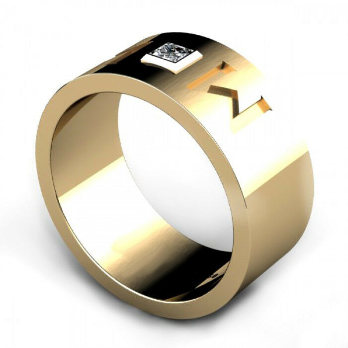 0.1ct Princess Cut Custom Alphabet Mens Wedding Ring 14k Yellow Gold Finish