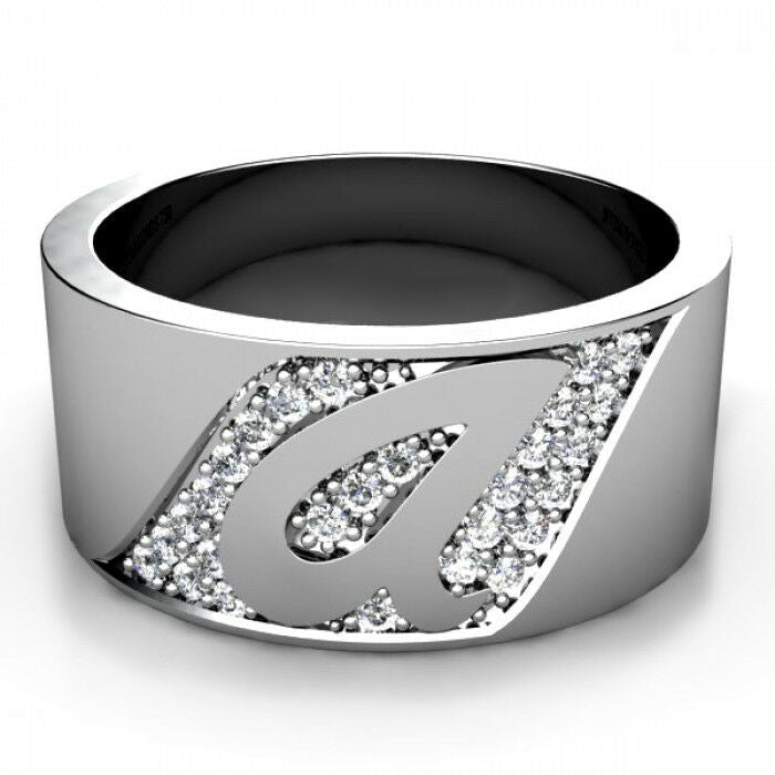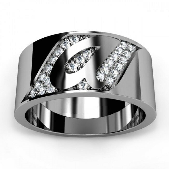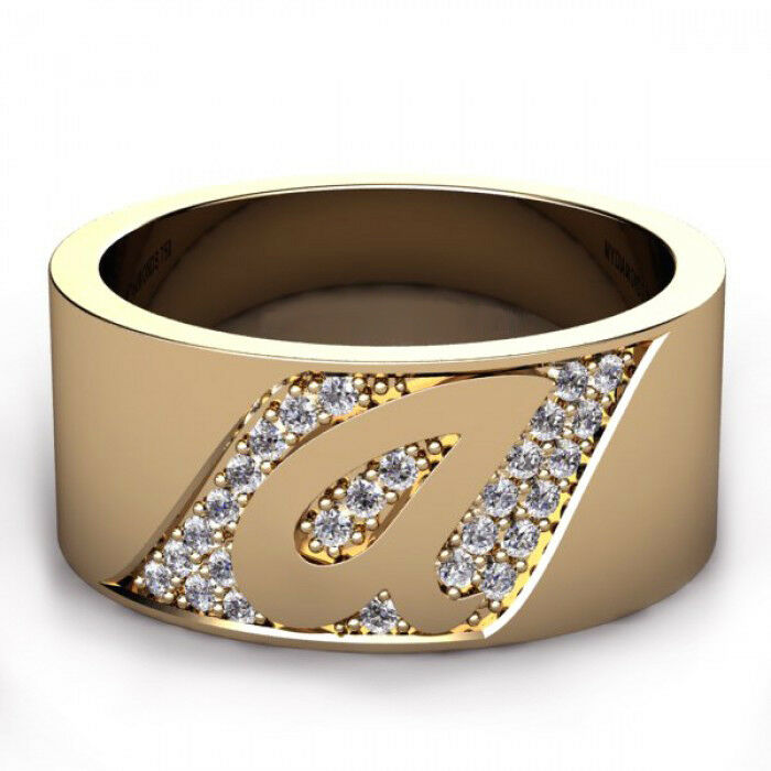 1ct Round Cut Custom Alphabet Men Wedding Ring Band 14k Yellow White Gold Finish