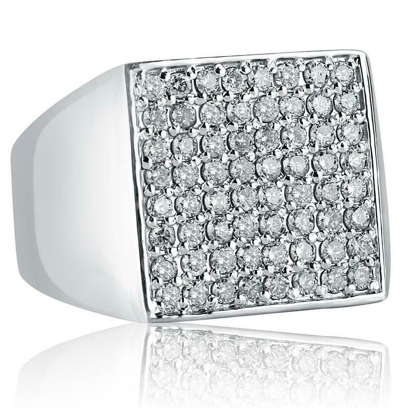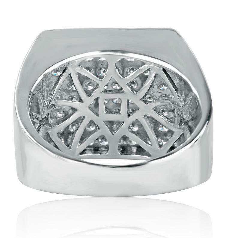 2.5ct Round Cut Diamond Square Cluster Tiled Men Engagement Ring 14k White Gold Over