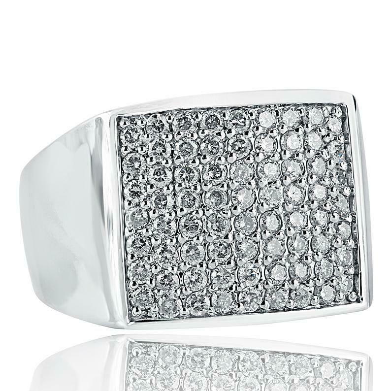 2.7ct Round Cut Diamond Square Cluster Tiled Men Engagement Ring 14k White Gold Over