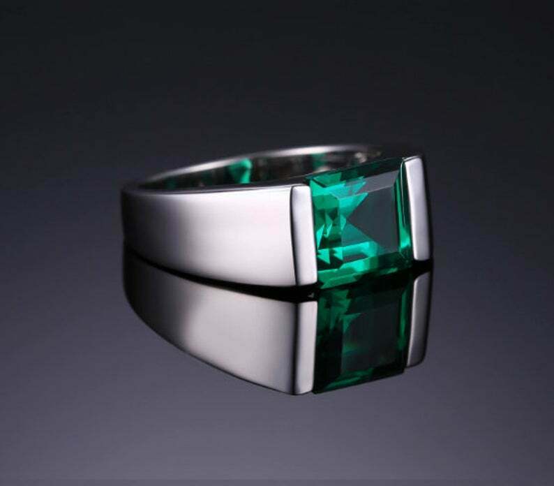 2ct Princess Cut Green Emerald Solitaire Engagement Men Ring 14k White Gold Over