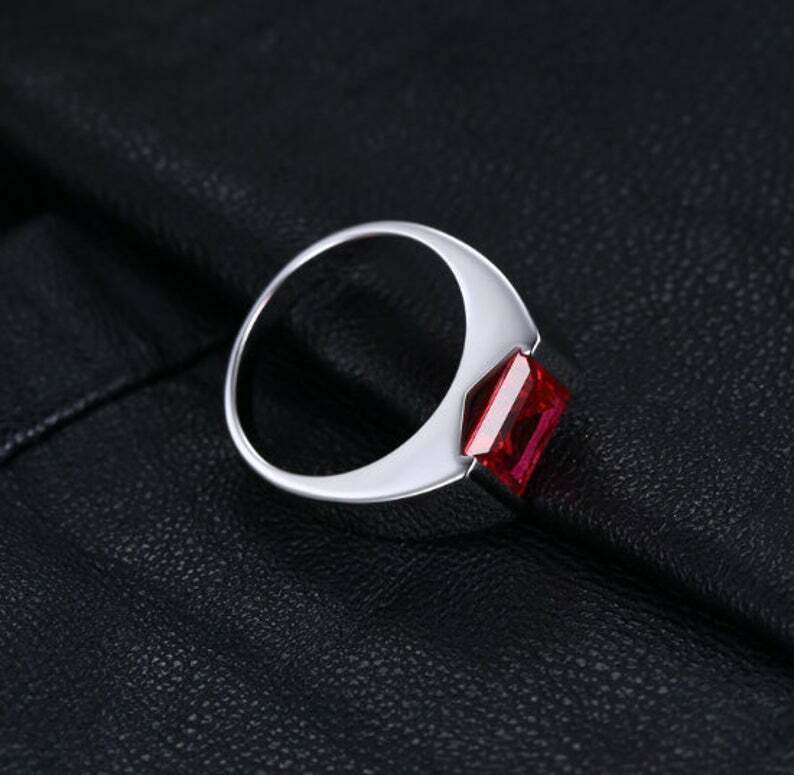 2ct Princess Cut Pink Ruby Solitaire Engagement Men Ring 14k White Gold Finish