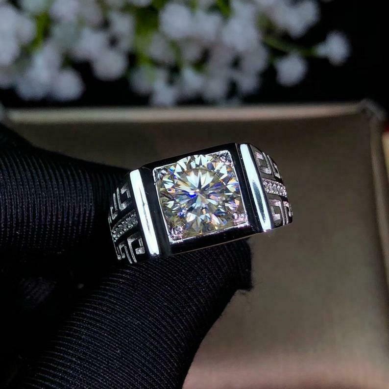 2ct Round Cut Diamond Accents with Solitaire Men Engagement Ring 14k White Gold Over
