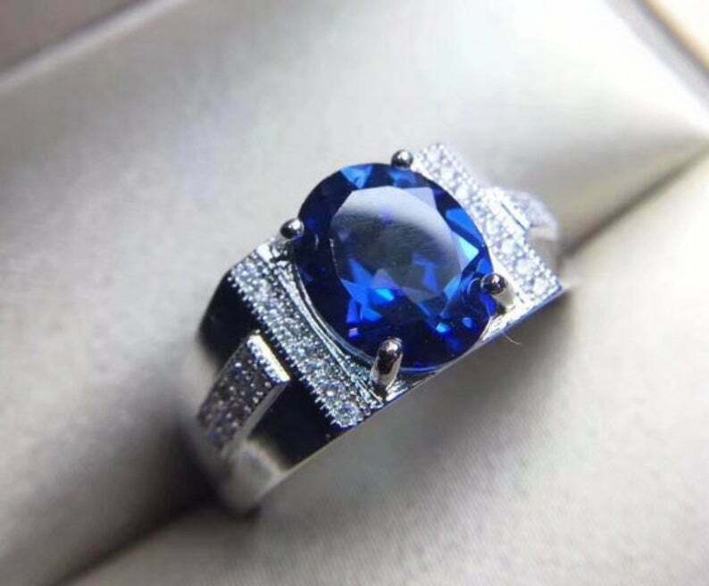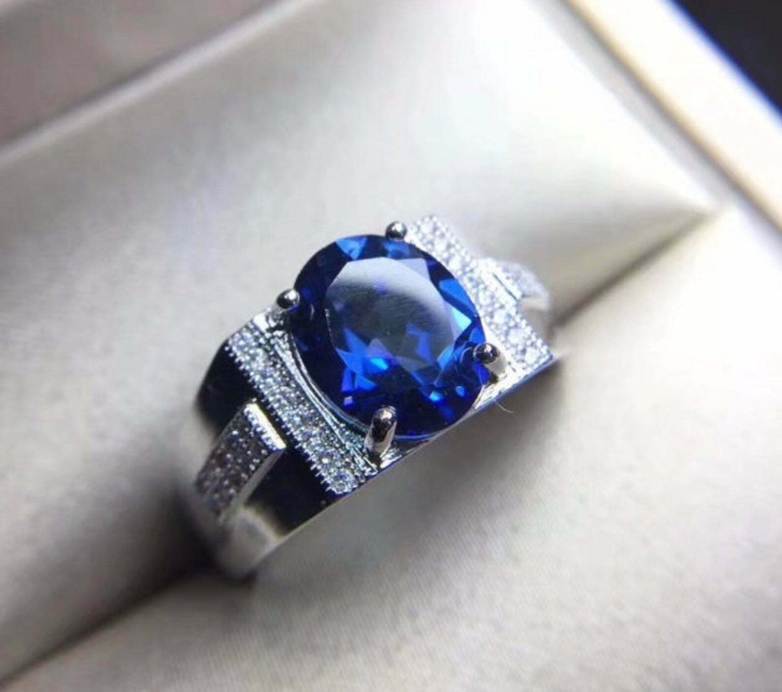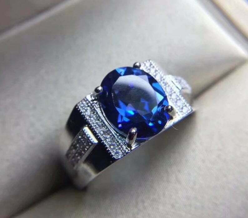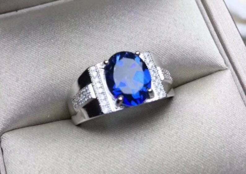 3.45ct Oval Cut Blue Sapphire Stylish Engagement Men Ring 14k White Gold Finish