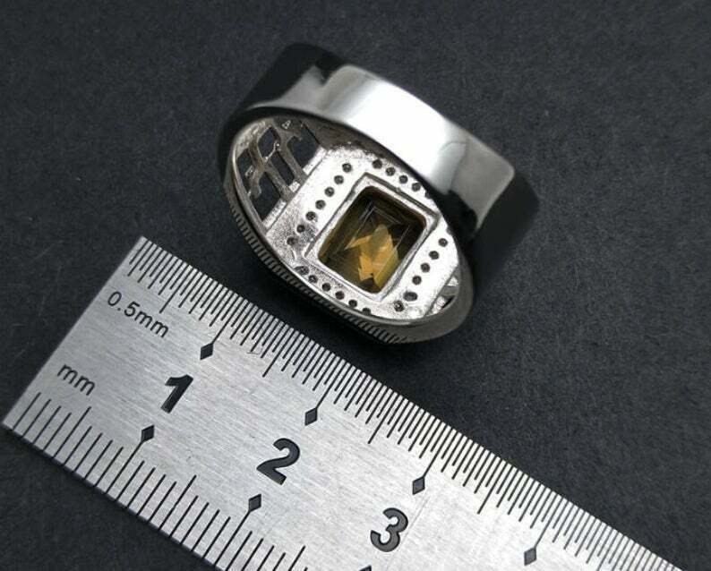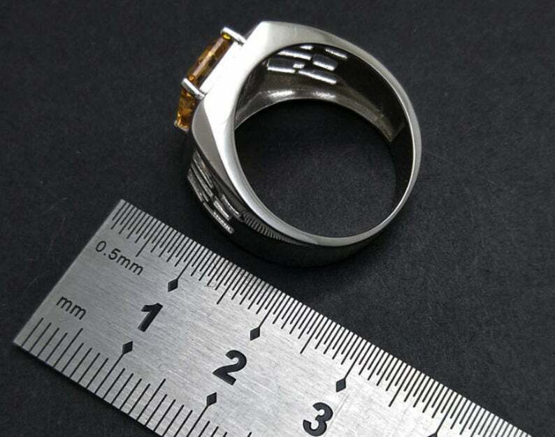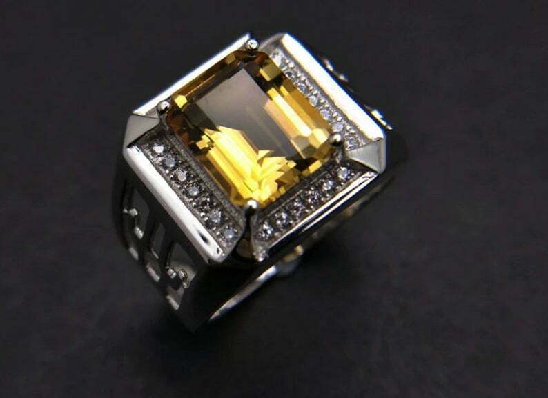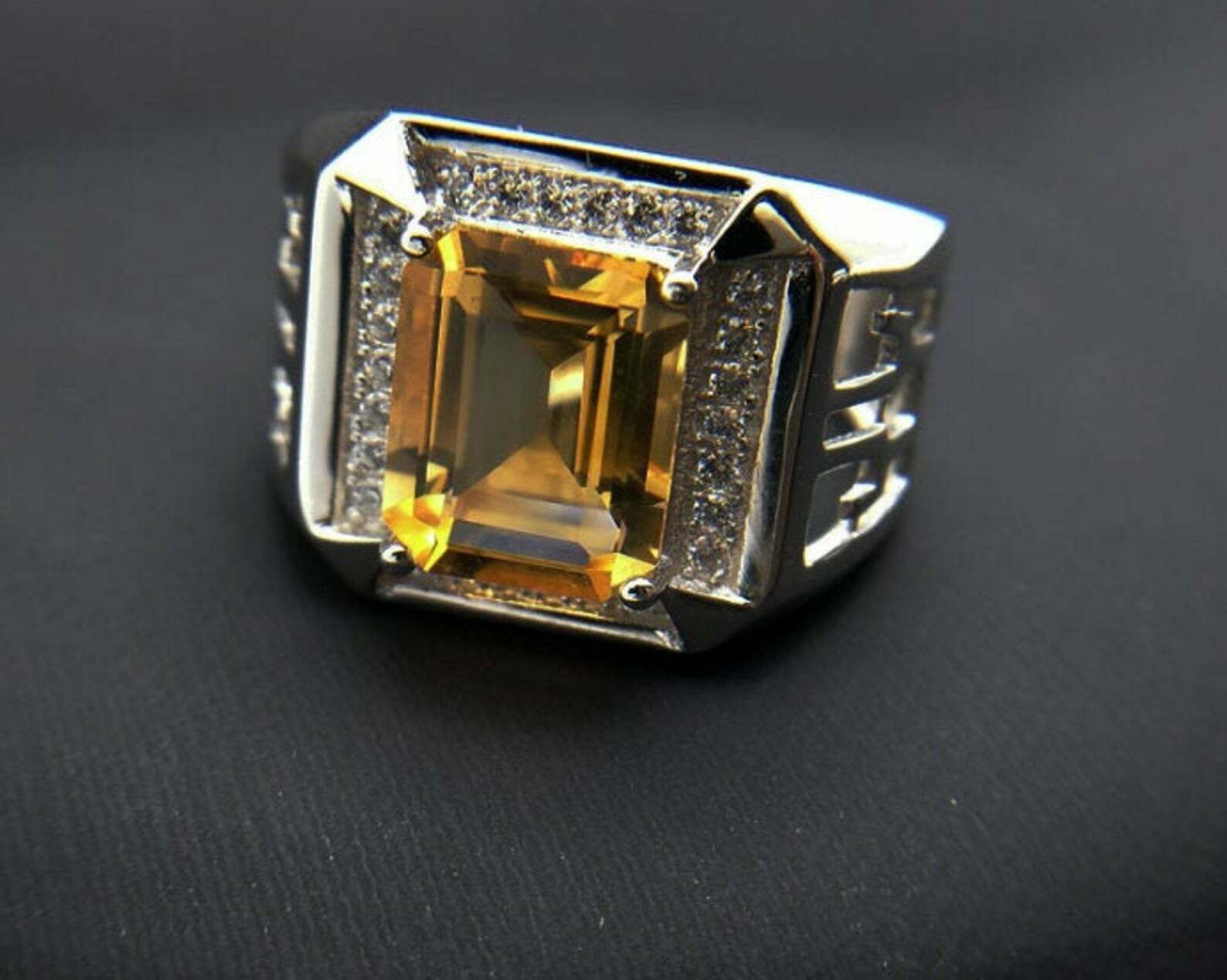 3.5ct Emerald Cut Yellow Citrine Halo Engagement Men Ring 14k White Gold Finish