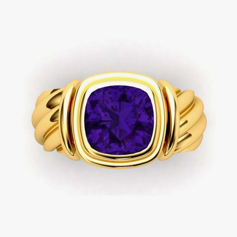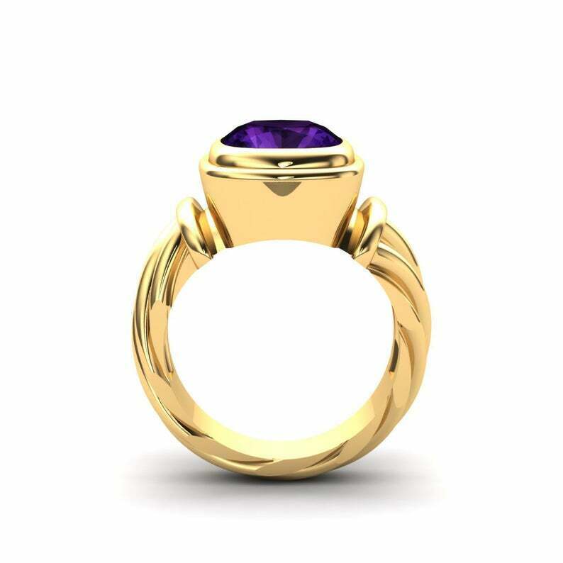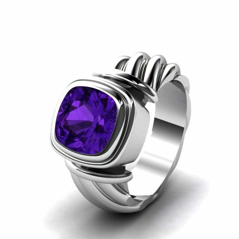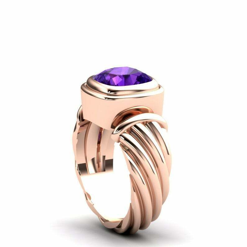 3ct Cushion Cut Amethyst Twist Shank Solitaire Men Ring 14k White Gold Finish