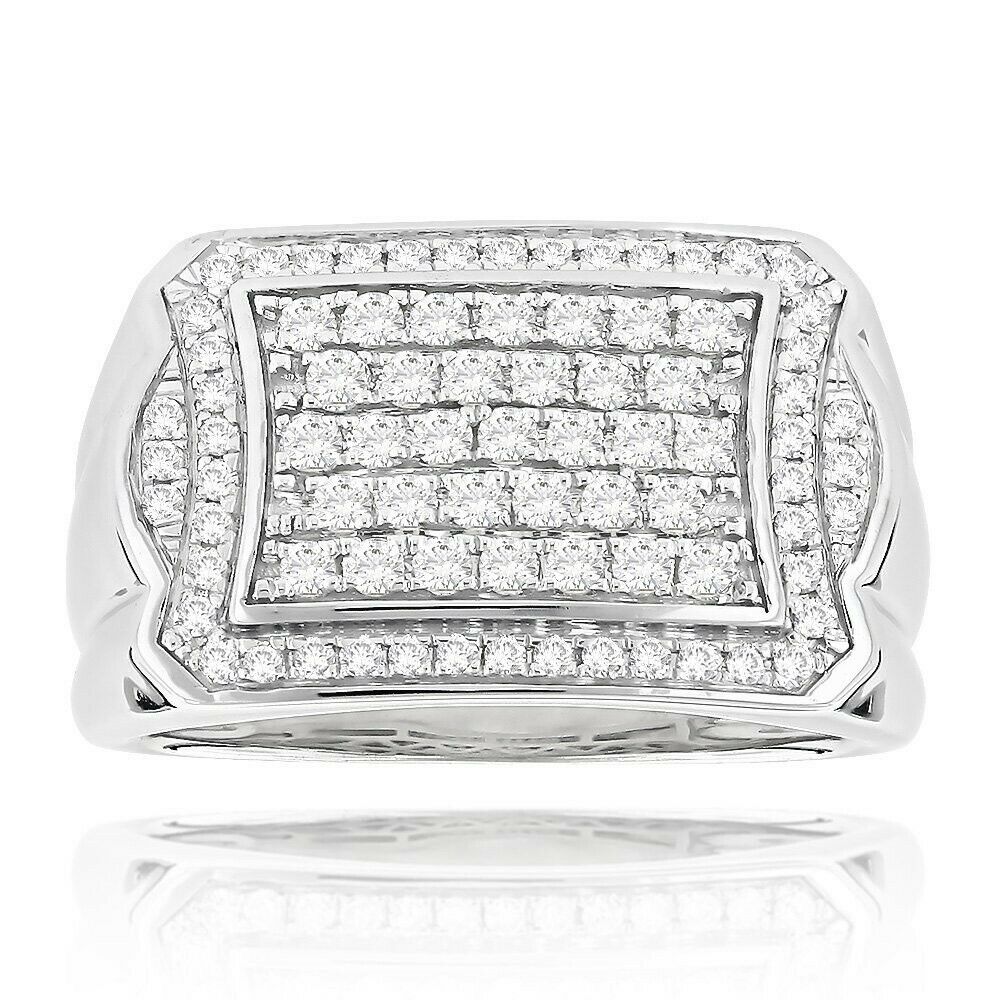 4Ct Round Cut Diamond Cluster Halo Men Engagement Ring 14K White Gold Finish