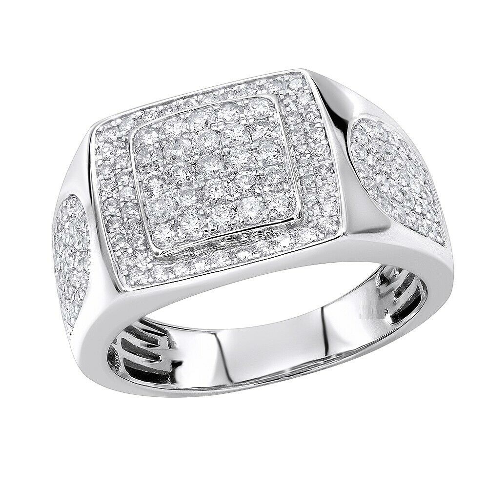 5Ct Round Cut Diamond 5 Row Cluster Halo Men Engagement Ring 14K White Gold Over