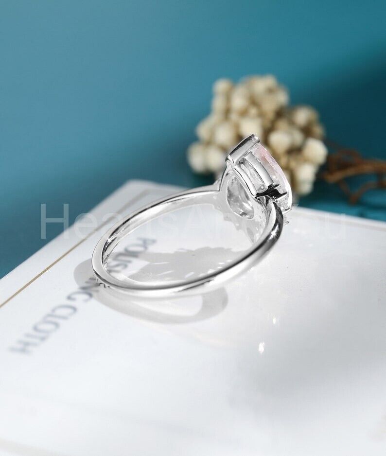 0.5ct Pear Cut Simulated Morganite Crown Engagement Ring 14k White Gold Plated