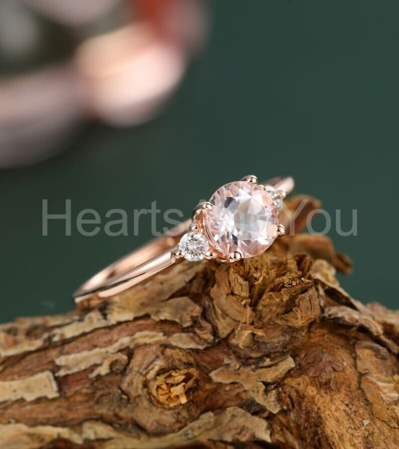 0.5ct Round Cut Simulated Morganite Trilogy Engagement Ring 14k Rose Gold Plated