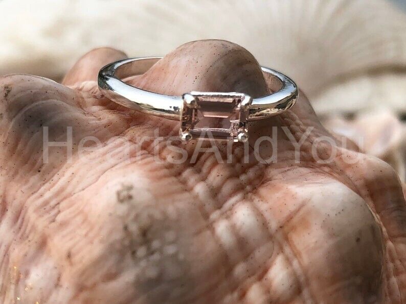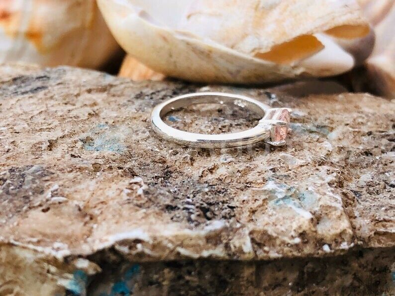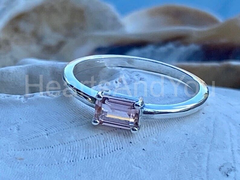 0.6ct Emerald Cut Simulated Peach Morganite Solitaire Ring 14k White Gold Plated