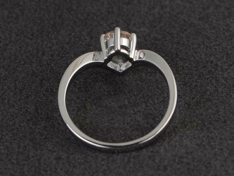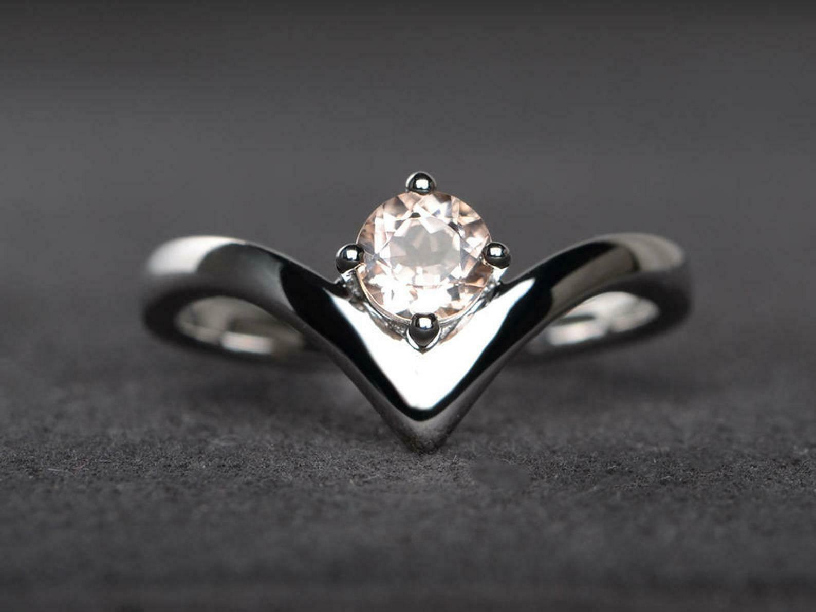 0.6ct Engagement Ring Round Cut Peach Morganite Solitaire Curved 14k White Gold Finish