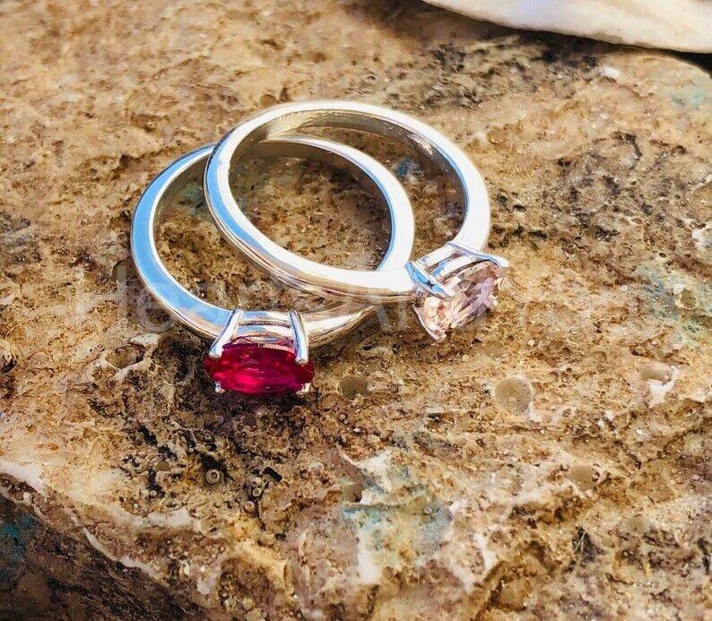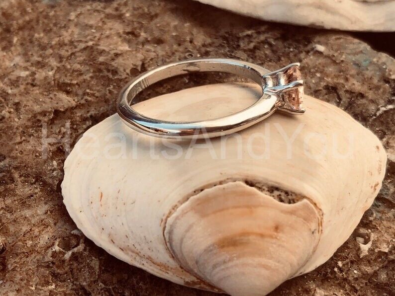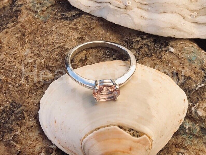 0.6ct Oval Cut Simulated Peach Morganite Solitaire Ring 14k White Gold Plated