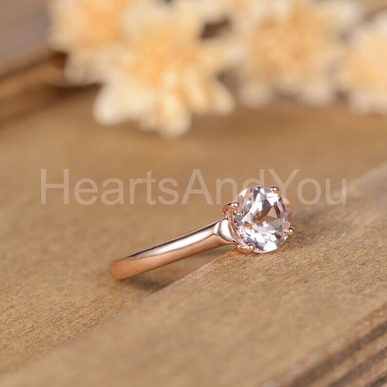 0.6ct Round Cut Simulated Peach Morganite Solitaire Ring 14k Rose Gold Plated