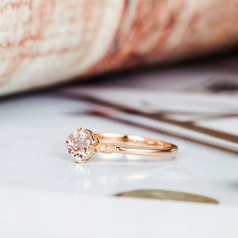 0.7ct Round Cut Peach Morganite Engagement Ring Minimalist 14k Rose Gold Finish