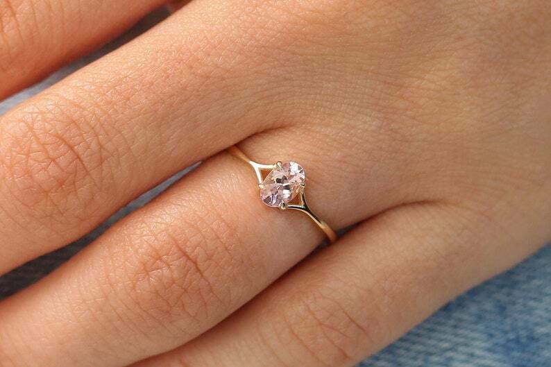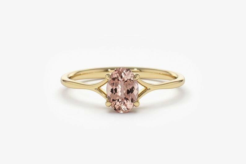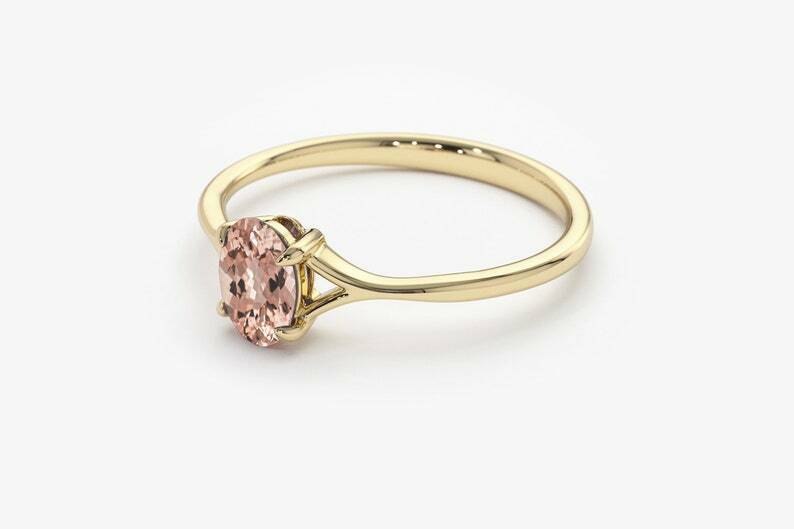 0.9ct Engagement Ring Oval Cut Peach Morganite Solitaire 14k Yellow Gold Finish