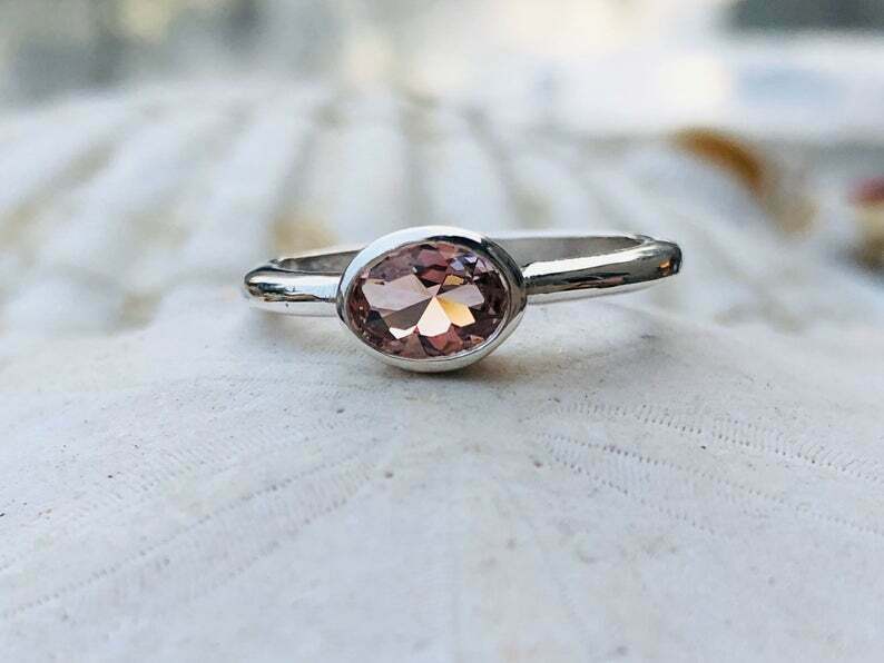 1.1ct Engagement Ring Oval Cut Peach Morganite Solitaire 14k White Gold Finish